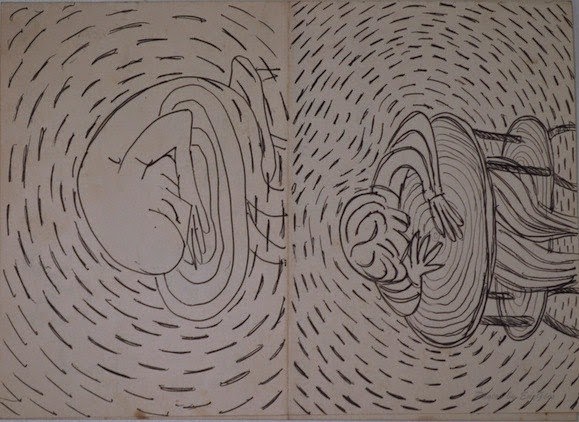 JD: Esses trabalhos foram feitos no fervor da juventude e no auge da chamada geração 80. E era um período em que o desenho para mim tinha duas funções: eles serviam de base para minha pintura (estudo gráfico) e eram desenhos onde eu buscava exercitar o meu traço sem muita intervenção de pensamento regulador. Eram desenhos mais rápidos, mais diretos, mais elétricos. E eu ia dando vazão também a um certo humor. Às vezes eu pegava um tema e fazia variações dele. Todos os desenhos tem uma história e eu me lembro de todos. Na verdade o que está exposto na galeria é só uma parte da minha produção artística do período. É uma seleção do que eu fiz e eu considero expressivo, capazes de dar uma ideia geral, mais ou menos, desse período que vai de 1983 a 1987.
